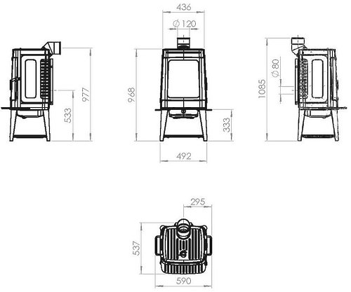 - Диаметр дымохода: 120 мм