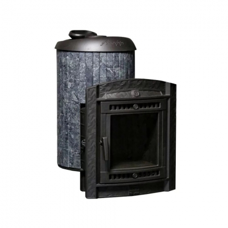 Практичная и компактная модель. Облицовка из талькохлорита по периметру внешней каменки не только обладают хорошими теплонакопительными свойствами, но и придают печи оригинальный внешний вид.