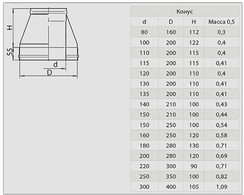 Конус - элемент утеплённого дымохода, защищающий теплоизоляционный материал от воздействия окружающей среды.