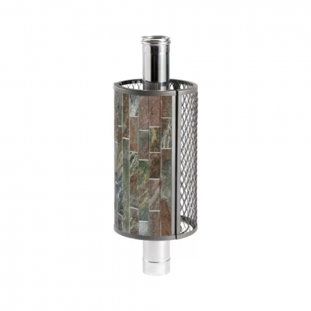 Сетка-каменка защищает от излучения, уменьшая поверхность открытой трубы, снимает тепло с ее стенок и направляет его на прогрев камней.